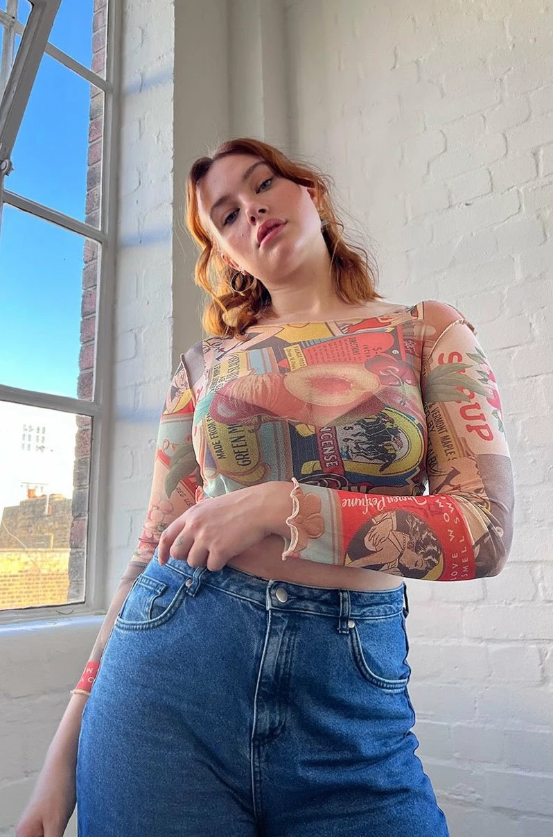 Be the first to review “New Girl Order MATCHBOX PRINT MESH LONG SLEEVE TEE Tops” Cancel reply
