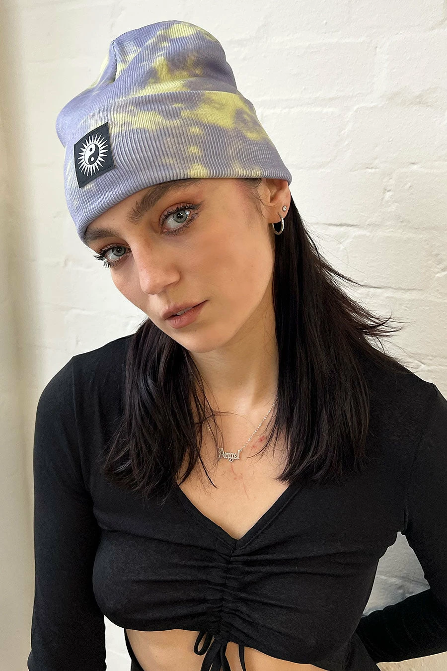 New Girl Order RIBBED TIE DYE BEANIE WITH BADGE DETAIL – OATMEAL