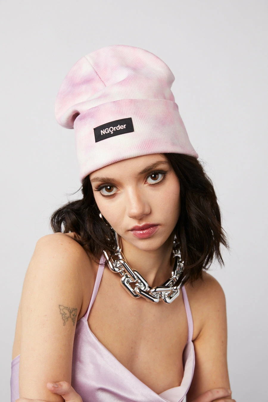 New Girl Order RIBBED BEANIE WITH NGO BADGE DETAIL – PINK Tops