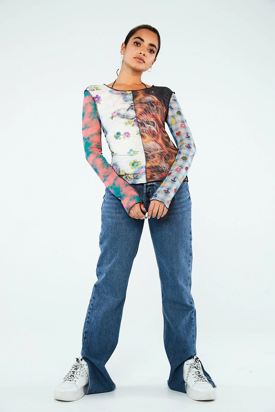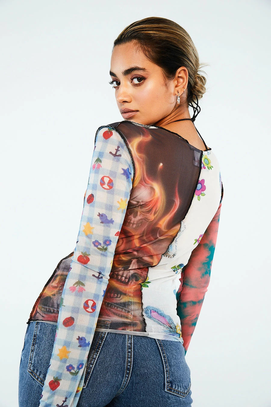 Be the first to review “New Girl Order SPLICED PATCHWORK MESH TOP Tops” Cancel reply